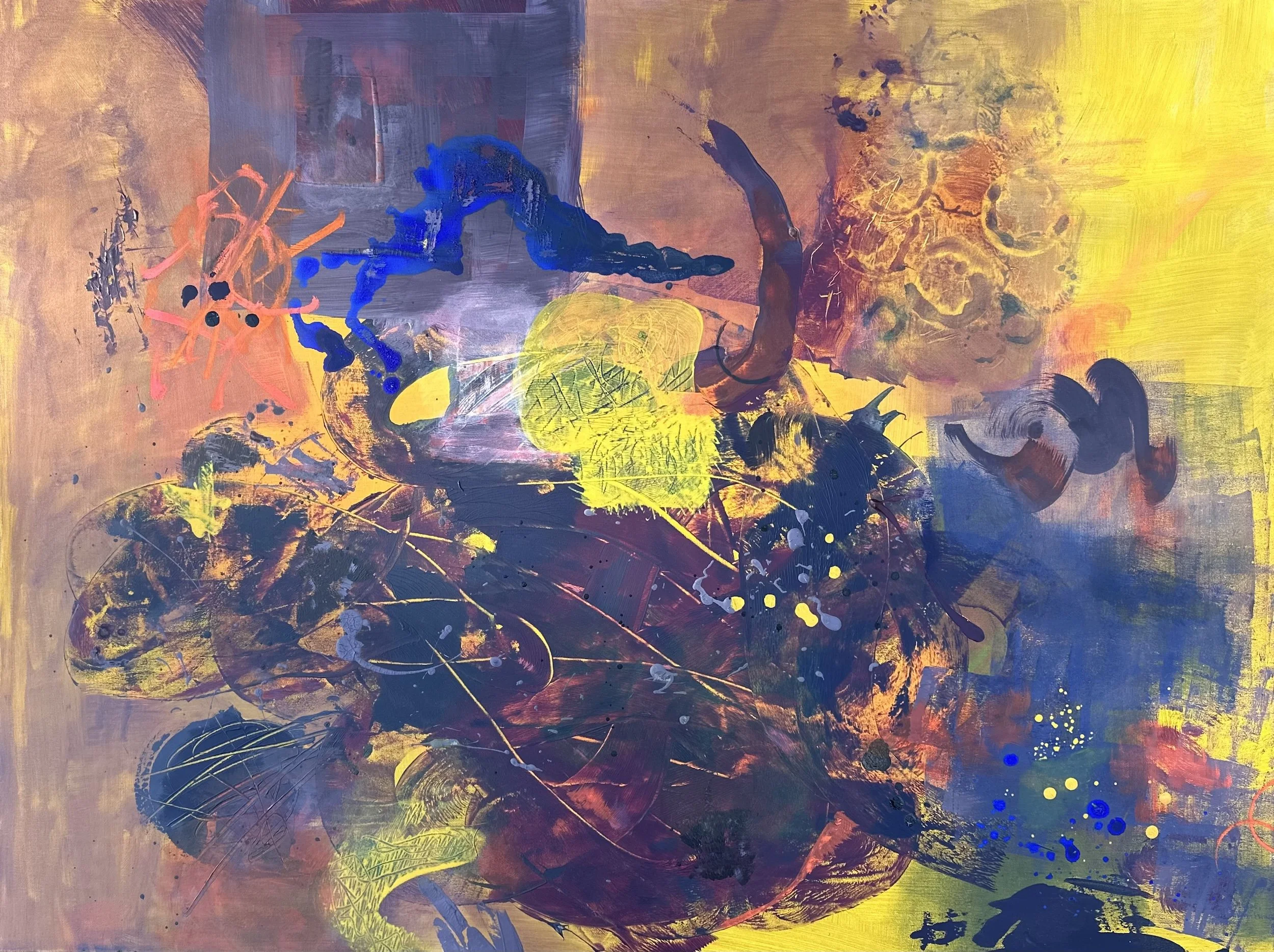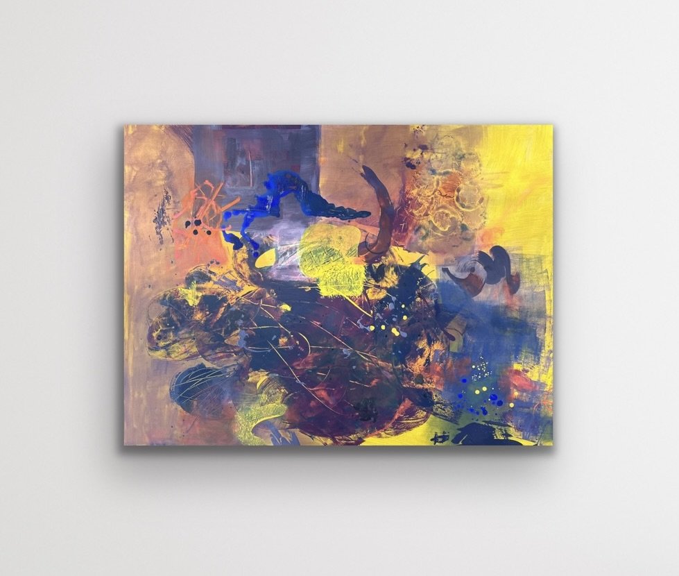 Hidden in the Shadows was completed in January 2024. This painting is one of the largest works I have done to date. The movement in this abstract work seems to follow a large entity or shape that is moving forward out of the shadows. It doesn’t feel frantic as it moves, rather it feels free, like it has just been released.